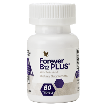 Основні вітаміни групи В для максимального заряду енергії. Дослідження показують, що до 30 відсотків дорослих не отримують достатньої кількості вітаміну В. Це особливо стосується вегетаріанців, веганів, і багатьох інших людей на обмеженій дієті. Форевер В12 Плюс максимально ефективно засвоюється і ви отримуєте максимум корисних речовин від кожної таблетки. Ми об’єднали вітамін B12 з фолієвою кислотою в революційну формулу, щоб допомогти організму підтримати метаболічні процеси, стимулювати виробництво червоних кров’яних клітин і зміцнити імунну систему. Надходження вітаміну B12 до вашого організму протягом дня буде сприяти підтримці здорового рівня енергії, а також допоможе вашому організму підтримувати оптимальний рівень гомоцистеїну, природної амінокислоти, яка сприяє здоров’ю серця. Дослідження показали, що жінки, які дотримуються здорової дієти з достатньою кількістю фолієвої кислоти протягом усього дітородного віку, можуть знизити ризик народження дитини з вродженим дефектом головного або спинного мозку. Аненцефалія і ущелина хребта є найбільш поширеними вродженими дефектами нервової трубки і пов’язані з дефіцитом фолату. Форевер В12 Плюс – чудовий вибір. Завдяки нашій формулі ви можете отримати потрібну кількість вітамінів групи В протягом декількох годин кожен день! Зробіть Форевер В12 Плюс частиною свого раціону і вже зовсім скоро ви відчуєте, наскільки сильно змінилося ваше життя в кращу сторону. Переваги - Допомагає підтримувати здоровий рівень гомоцистеїну для здоров'я серця - Необхідний для виробництва енергії - Сприяє нормальній когнітивній функції - Допомагає підтримувати метаболічні процеси та сприяти здоров'ю імунної системи - Формула з поступовим вивільненням вітамінів - Не містить глютену - Підходить для вегетаріанців і веганів ВМІСТ УПАКОВКИ 60 таблеток